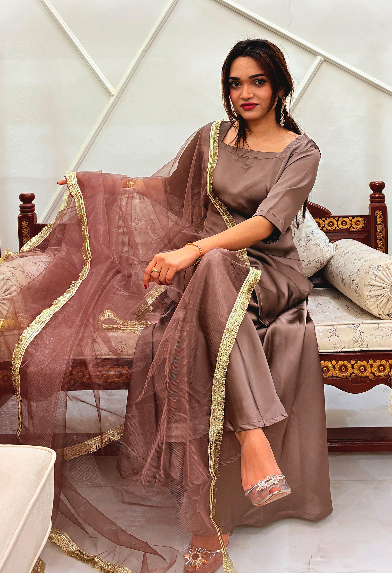 Noor-e-Abresham Brown Silk (3 Pcs Stitched)