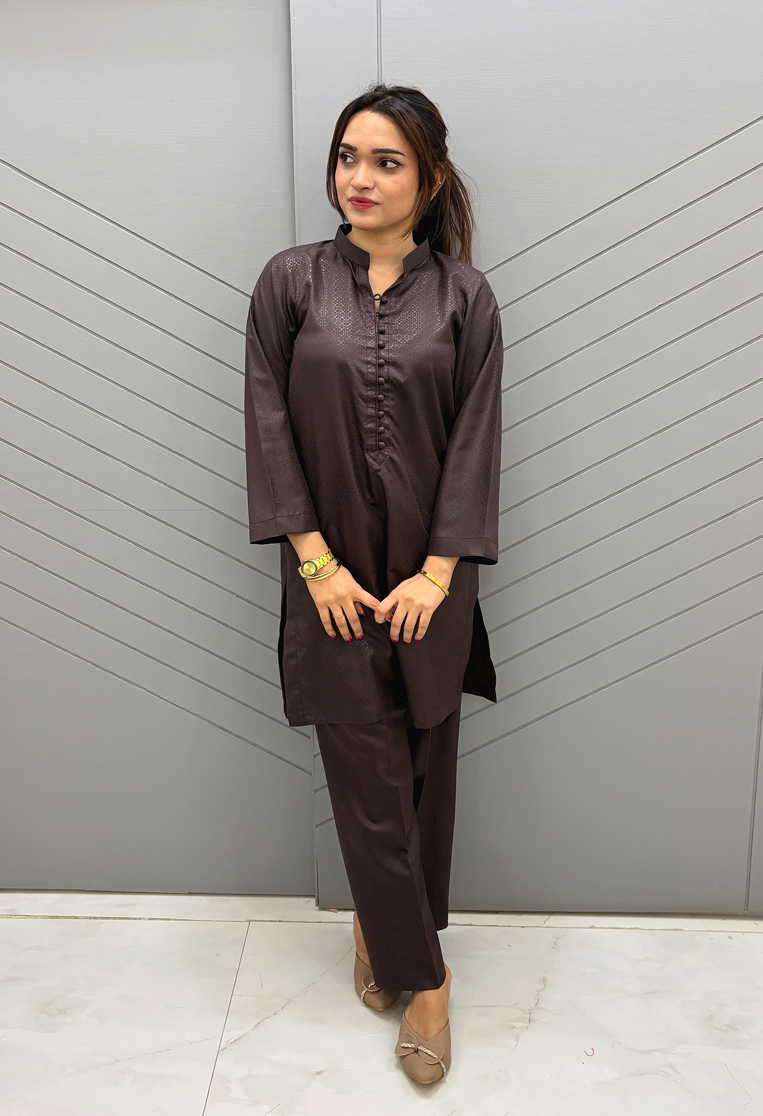Calm Fit Brown Co-Ord Set Cotton (2 Pcs Stitched)