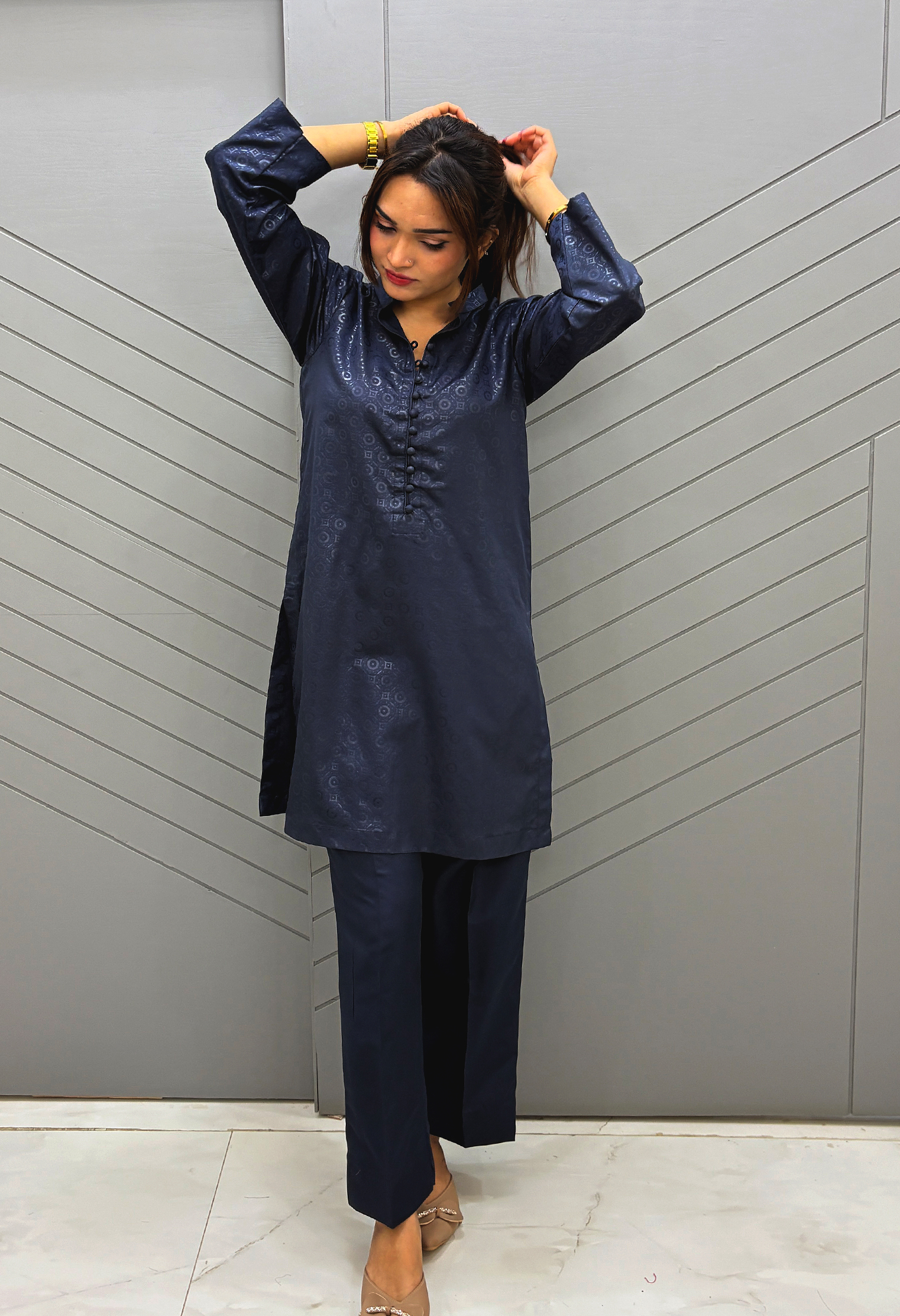 Calm Fit Dark Blue Co-Ord Set Cotton (2 Pcs Stitched)