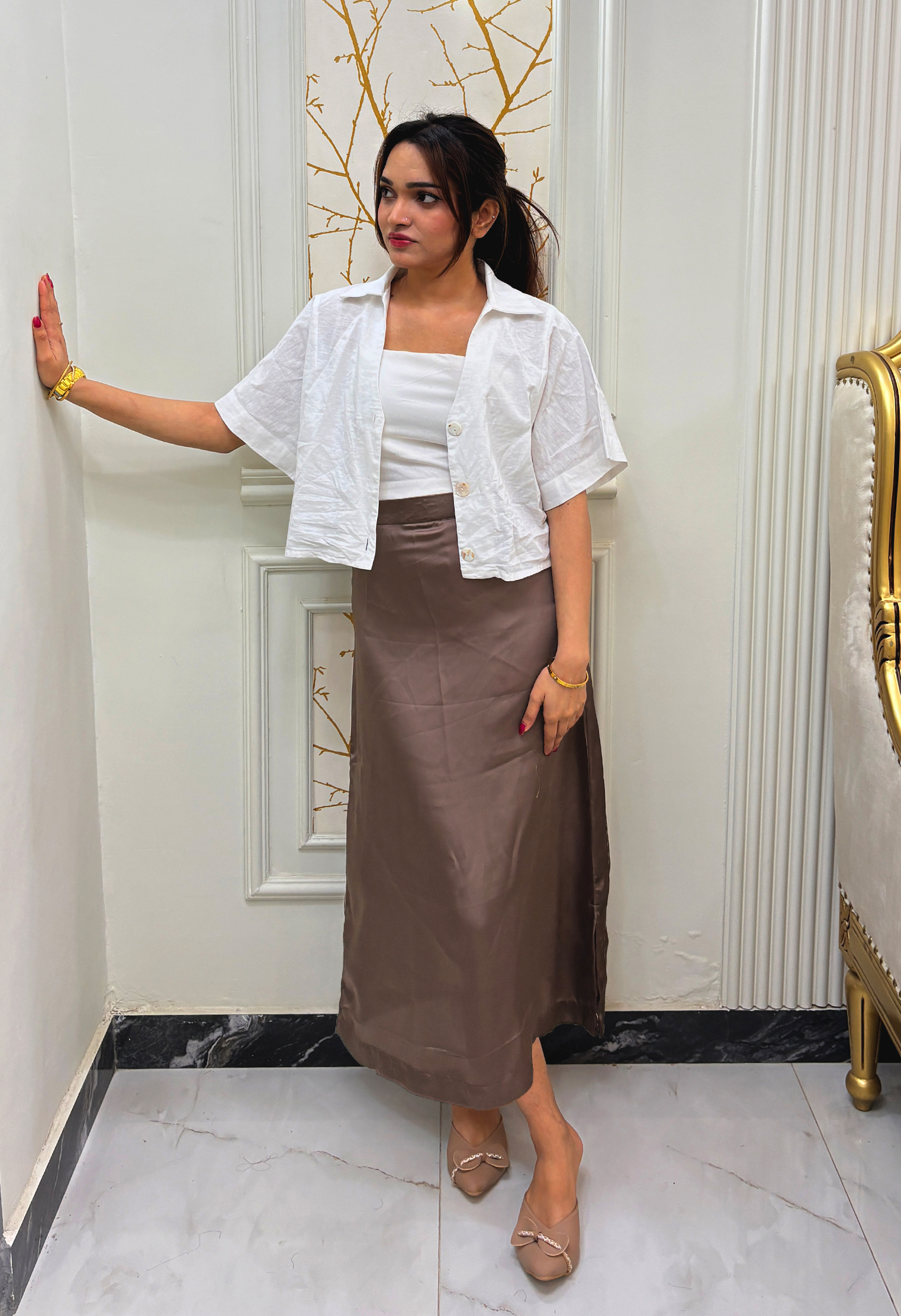 Fit Skirt Brown Silk (1 Pcs Customize Size)