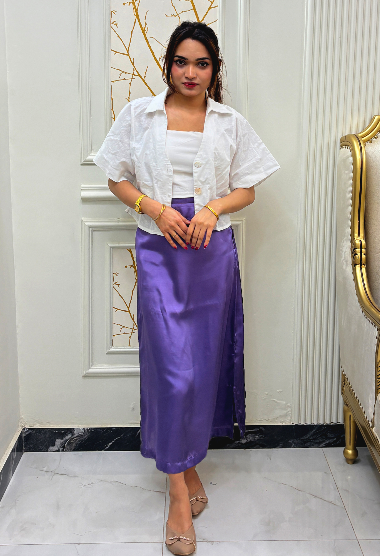 This lilac silk fabric skirt is designed for women who love classic luxury with modern styling. Lightweight and comfortable, it drapes beautifully and enhances movement. Ideal for parties, celebrations, and formal gatherings, this skirt is a versatile addition to any wardrobe.